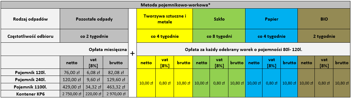 Odbiór i zagospodarowanie odpadów komunalnych z nieruchomości NIEZAMIESZKAŁYCH (metoda pojemnikowa):